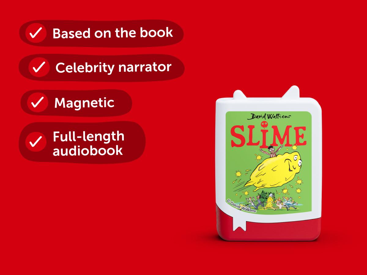 Welcome to Mulch Island, a terrible place ruled by utterly awful adults who love making kids’ lives miserable. But everything changes when Ned, a brave and clever boy, discovers the mysterious power of slime. With his slippery new secret weapon, Ned plots to take down the nastiest grown-ups of all, including the formidable Aunt Greta Greed. Packed with laughs, mischief and more slime than a snail convention, Walliams fans just pop this Tonie on their Toniebox for a fast-paced, fantastically funny adventure.*Good to know:** Running time:3 hours 7 minutes* Suitable for: 7+*This Tonie teaches:** Courage* How to stand up to injustice* The power of creativity*Tracklist:*Opening CreditsMeet the CharactersPrologueChapter 1: MulchChapter 2: A Beastly GirlChapter 3: GunkChapter 4: Bogeys Under the BedChapter 5: The Bath of DoomChapter 6: Gunk MonsterChapter 7: Blobby BlobChapter 8: A Particularly Noisy PooChapter 9: SlimeballChapter 10: Wrath's RulesChapter 11: Blazing BottomChapter 12: Cold HeartsChapter 13: Clockwork RobotChapter 14: The Most Revolting Toys in the WorldChapter 15: Giant Jelly BabiesChapter 16: The Perfect Shade of GreenChapter 17: The Book of Park OccurrencesChapter 18: Bottom BangerChapter 19: Dance to the Music of SlimeChapter 20: Gruesome TwosomeChapter 21: Peeved CowChapter 22: Ice-cream PartyChapter 23: Flying SaucerChapter 24: Kitty Litter CastleChapter 25: A Swarming Sea of CatsChapter 26: Eaten AliveChapter 27: A Cat as Big as a BearChapter 28: A Mountain of MoggiesChapter 29: Setting SunChapter 30: ForeverChapter 31: Final FlightEpilogueClosing Credits_Tonies only work when paired with a Toniebox_