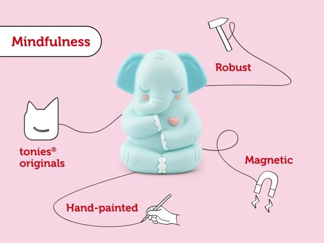 Come along with Greta the Affirmations Elephant on a joyful journey through the grasslands of growth, past the trembling tree and into the soothing sea of feels. Simply pop this Tonie on the Toniebox, and let your minis enjoy fun, easy exercises that help boost their mood, build confidence, practice self-love and discover the empowering magic of the word “yet.” Perfect for supporting their emotional wellbeing in a playful, interactive way.\*\*Good to know: \*\** Running time: 59 minutes* Suitable for: 3+*This Tonie teaches:** How to build confidence* Self-love* Self-care*Tracklist:*01\. INTRODUCTIONExercise 1: Ready to Receive02\. STORY: Entering the Forest03\. STORY: The Trembling TreeExercise 2: Worry VisualisationExercise 3: Heart HugExercise 4: Chanting with Om04\. STORY: The Grasslands of GrowthExercise 5: The Power of YetExercise 6: Flip It05\. STORY: The Sea of FeelsExercise 7: Count to CalmExercise 8: Mindful MinuteExercise 9: The Journey Home06\. Outro_Tonies only work when paired with a Toniebox_