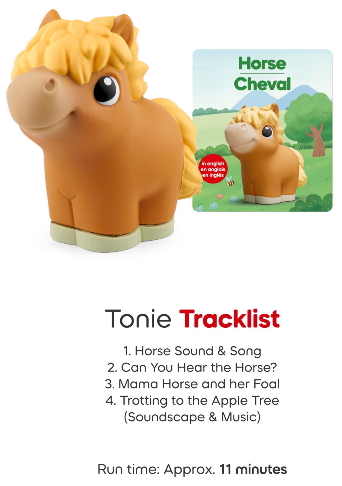 Listen, play, and learn about the wonderful world of farm animals! My First Tonies are soft and squeezable, perfect for 1–3-year-olds.How do cows talk to their friends? What are pigs up to all day? And how do horses like to play? Little listeners will love getting to know their first farm animals in a fun and interactive way.Discover a brand-new range of Tonies made just for little listeners aged 1 and up! Designed to support early learning through play, My First Tonies combine real animal sounds and playful language with short, simple stories. These catchy rhymes spark curiosity and imagination and help build vocabulary, boost listening skills, and encourage early language development in a fun, engaging way.Each My First Tonie features an original song, perfect for singing, dancing, and moving around, plus a mix of instrumental music and animal sounds that invite open-ended play and create a calming, farm-themed soundscape.*Features:** Sounds and songs for the big first words: Support little ones as they start learning about their favorite topics with age-appropriate, screen-free fun.* Real sounds from the real world: Boost kids’ curiosity about the world around them with real audio, from the roar of a plane engine to that of a tiger.* Soft and squeezable design for tiny hands: From the squishy and soft texture to the larger yet lightweight size, My First Tonies are specifically created for kids 1+ to safely handle all on their own.* Easy to clean: When it comes to little kids we know things get big-time sticky. That’s why my \* First Tonies are designed for easy cleaning. Wet a cloth with just a touch of dish soap and water, wipe down, and get ready for more play.* Total run time: 37 minutes*Track List:** Cow Sound & Song