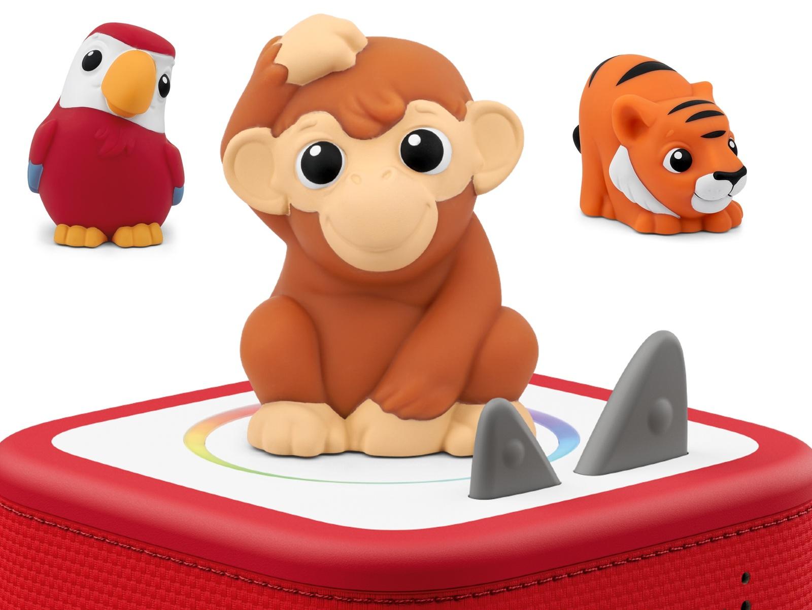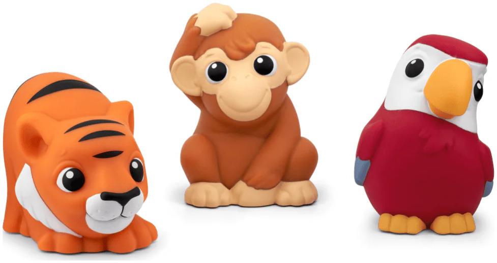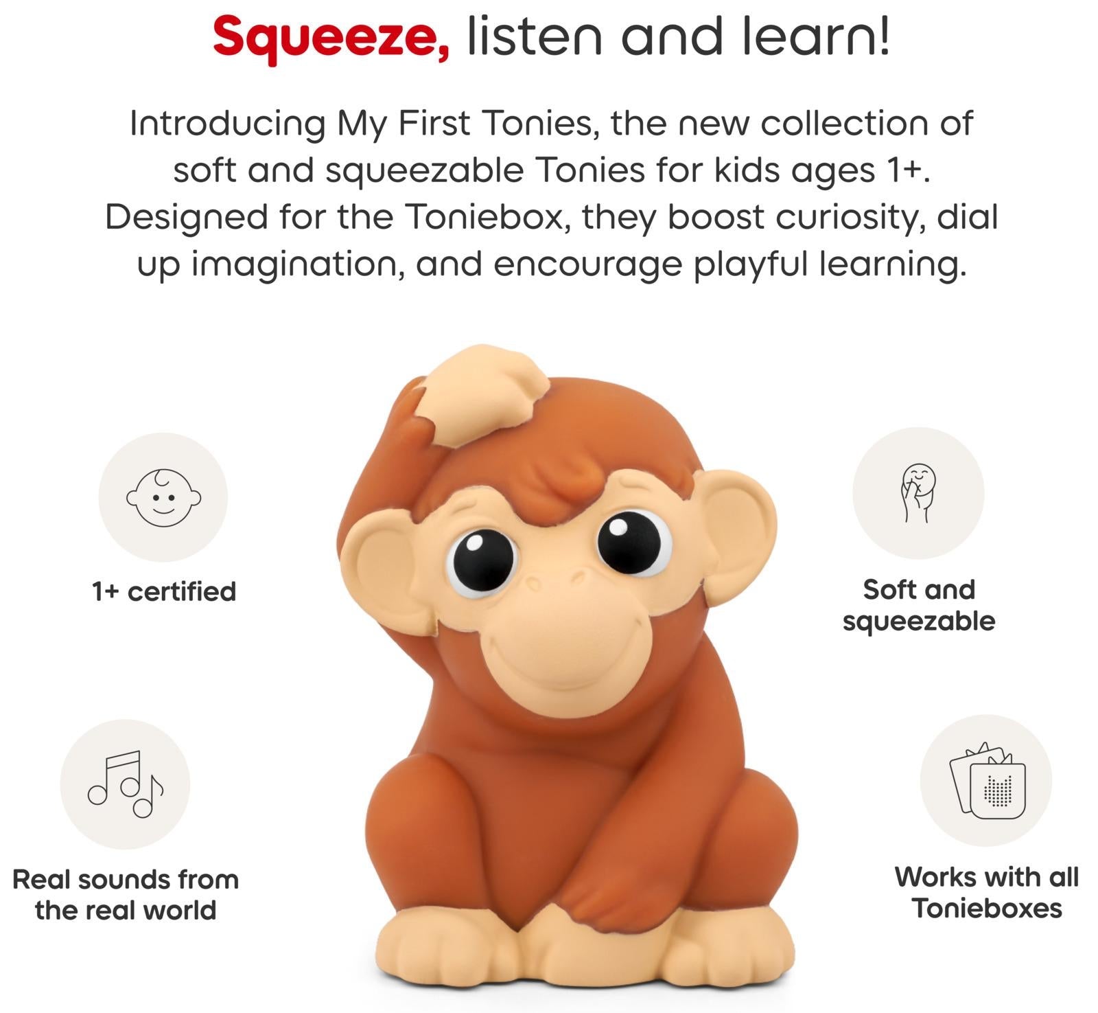 Listen, play and learn about the colorful world of the jungle animals! My First Tonies are soft and squeezable, perfect for 1–3-year-olds.Sneak through the trees with a tiger, swing through the branches with a monkey, or fly high with a colorful parrot! With short, lovingly told stories about tigers, monkeys, and parrots, they help build vocabulary, boost listening skills, and encourage early language development in a fun, engaging way.Discover a brand-new range of Tonies made just for little listeners aged 1 and up! Designed to support early learning through play, My First Tonies combine real animal sounds and playful language with short, simple stories. These catchy rhymes spark curiosity and imagination and help build vocabulary, boost listening skills, and encourage early language development in a fun, engaging way.Each My First Tonie features an original song – perfect for singing, dancing, and moving around, plus a mix of instrumental music and animal sounds that invite open-ended play and original jungle animal song with a catchy melody.*Features:** Sounds and songs for the big first words: Support little ones as they start learning about their favorite topics with age-appropriate, screen-free fun.* Real sounds from the real world: Boost kids’ curiosity about the world around them with real audio, from the roar of a plane engine to that of a tiger.* Soft and squeezable design for tiny hands: From the squishy and soft texture to the larger yet lightweight size, My First Tonies are specifically created for kids 1+ to safely handle all on their own.* Easy to clean: When it comes to little kids we know things get big-time sticky. That’s why my \* First Tonies are designed for easy cleaning. Wet a cloth with just a touch of dish soap and water, wipe down, and get ready for more play.* Total run time: 36 minutes*Track List:** Monkey Sound & Song