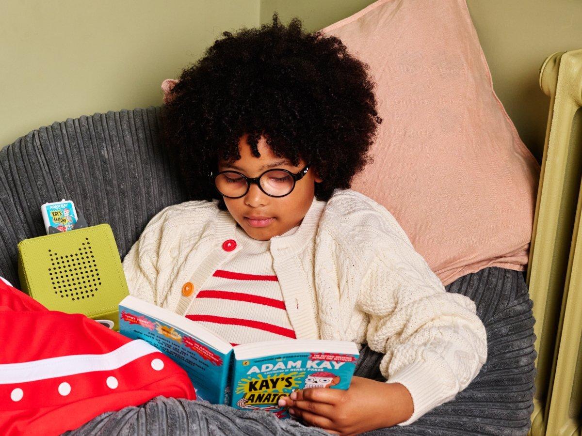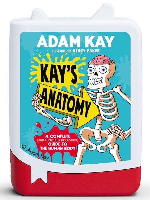 *tonies: Audiobook – Adam Kay (Kay's Anatomy)*Laugh-out-loud funny and quietly educational, curious kids will love Dr Adam Kay’s sick take on the human body. Just have them pop this Book Pocket Tonie on top of a Toniebox and get ready for plenty of snort-laughter and toilet humour, as Dr Kay takes them on a stomach-churning tour through their own insides. Covering key stage 2 and 3 human biology topics, it also features bogeys, poo, vomit and sweat. Would you get that in a classroom? Maybe – but with this Book Pocket Tonie, they might even want to listen at home…Tonies are characters that feature content, stories and songs from an ever-growing collection of modern favourites and timeless classics. Swapping stories is as simple as changing the Tonie on your Toniebox. Each Tonie is unique and includes its own selection of child-friendly content. (Artists performing tonies songs and stories may differ from those performing original licensed content.)*Specifics:** *Recommended Age* \*\*+* *Running Time* – approx. \*\* minutes* *Features* – Magnetic, hand-painted* *Contents* – 1× Tonie* *Material* – Plastic*Tracklist:*01\. Opening Titles02\. Introduction03\. Skin04\. Heart05\. Blood06\. Lungs07\. Brain08\. Hair And Nails09\. Eyes And Ears And Mouth And Nose10\. Bones11\. Muscles12\. Gut13\. Kidneys and Liver14\. Reproduction15\. Germs16\. Conclusion17\. Credits
